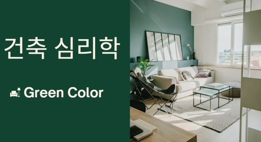 그래서 오늘은 건축 심리학이란 주제의 두번째 이야기로 그린 컬러가 공간에 미치는 심리적 영향에 대해서 알아보고자 해요.