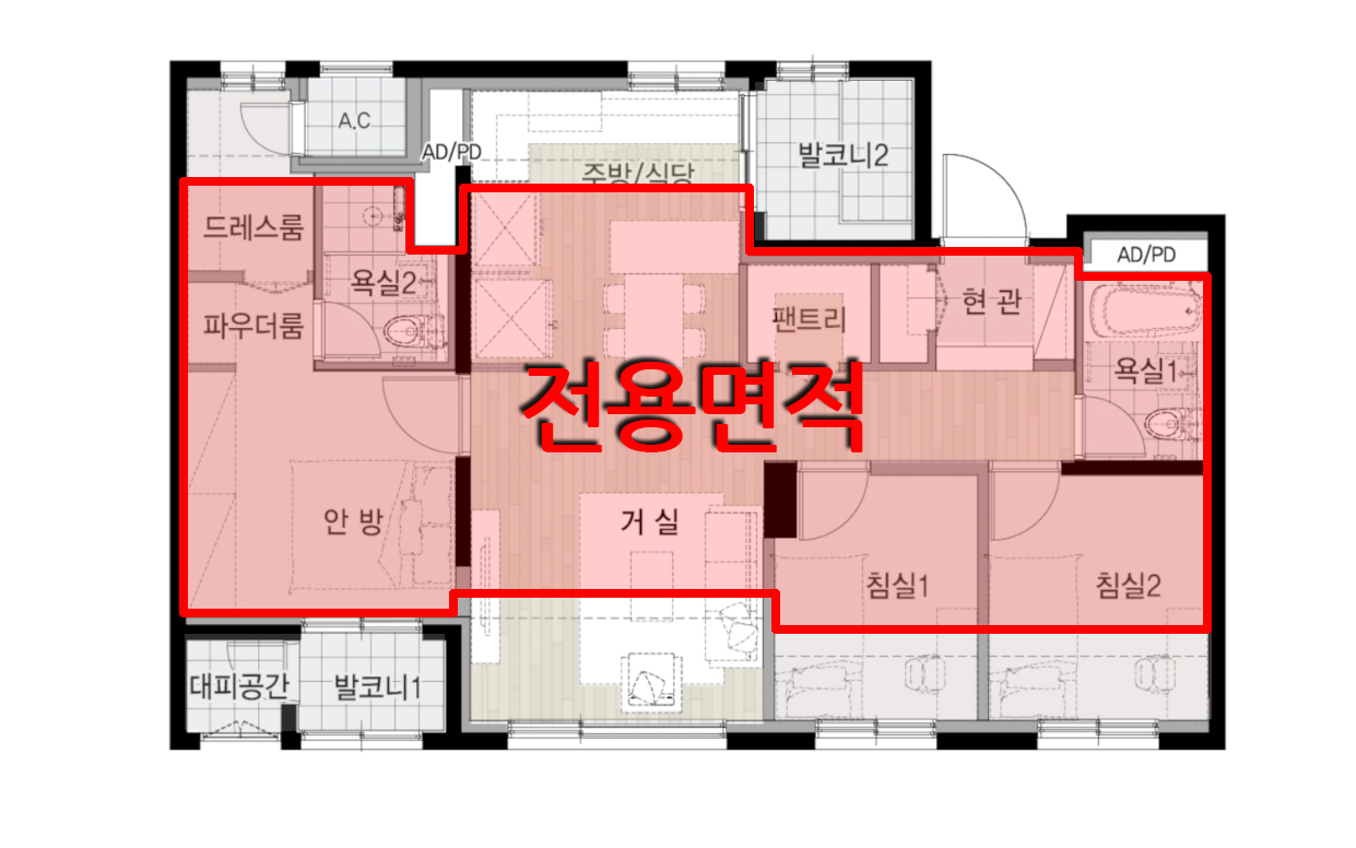그러면 내가 살고있는 아파트의 전부가 전용 면적일까요??