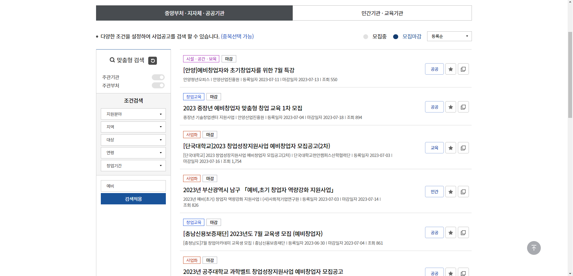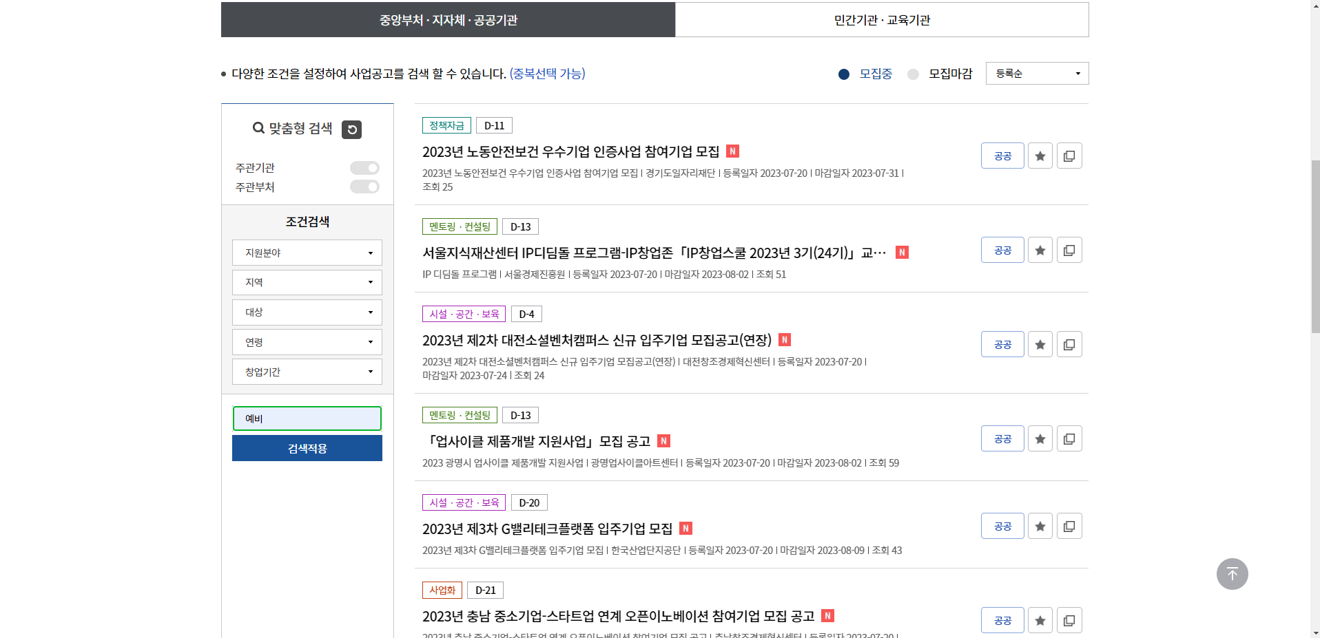두번째!!! 나에게 맞는 지원사업 검색하기!!