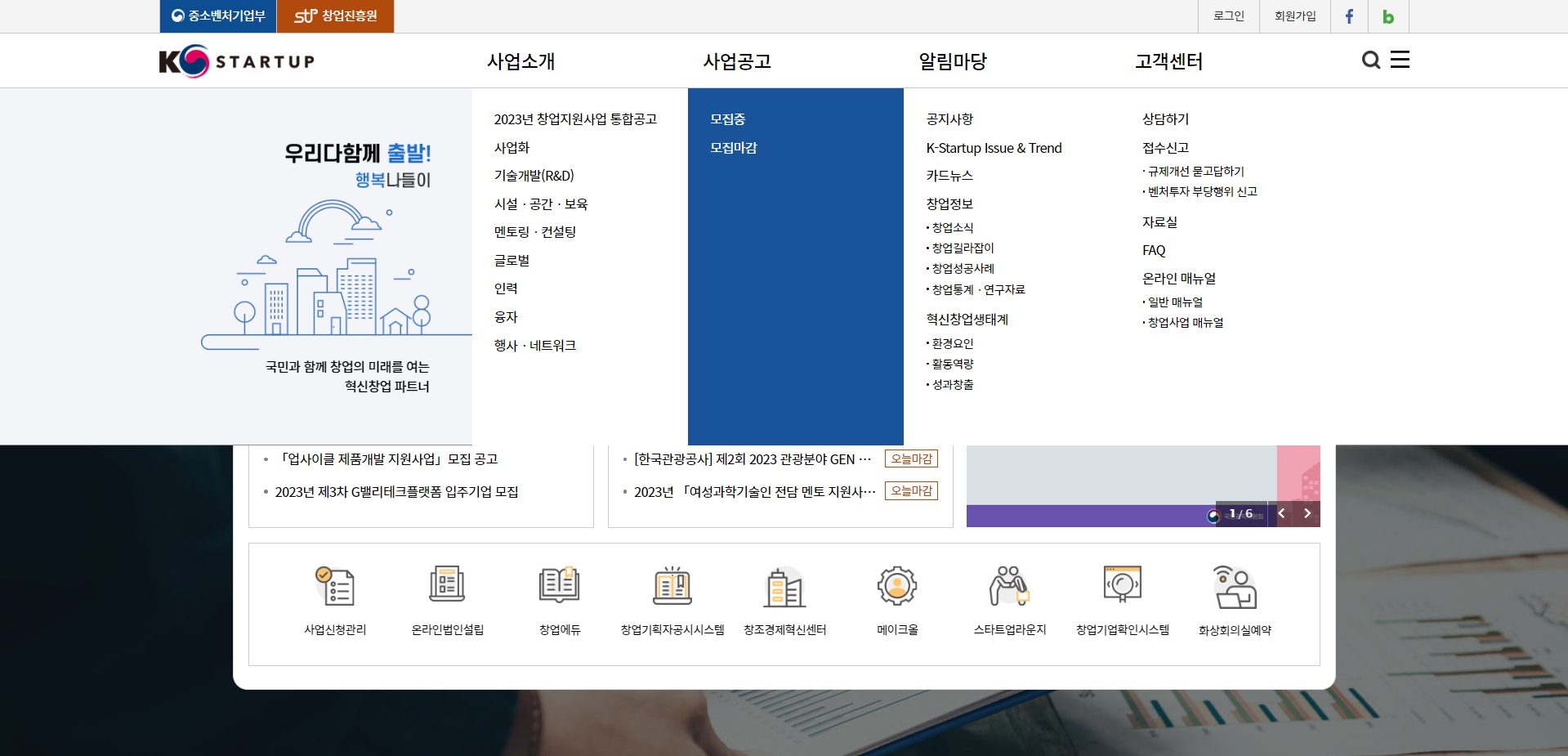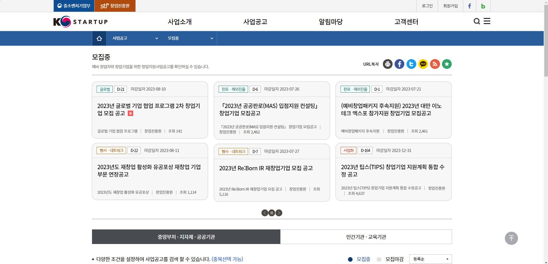 메인 화면 상단에 사업공고라는 창이 보이실 거에요!!
